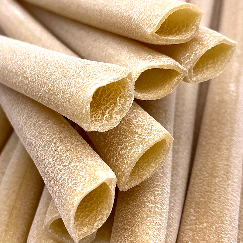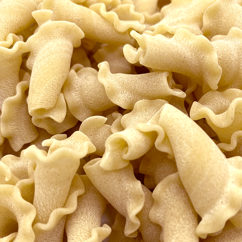 “Le Campane” sono una linea di pasta bio realizzata con antico grano di Saragolla, fra i formati si distinguono i fusilli lunghi. Anche questi con una struttura adatta a far aderire i sughi e a rendere golosa ogni forchettata di prodotto.