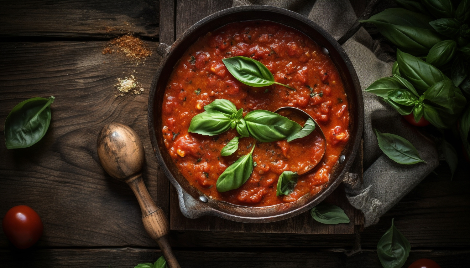 La pasta, paziente e complice, volteggia nella danza frizzante dell’acqua in ebollizione. Il pomodoro, re indiscusso di questo regno, si trasforma in una salsa corposa, raccontando storie di campi baciati dal sole e di passioni mediterranee.