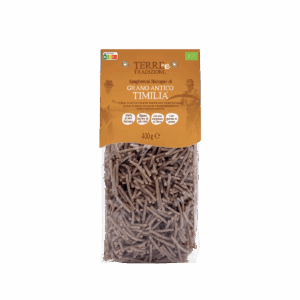 - A base di semola integrale di grano duro Timilia (o Tumminìa) da agricoltura biologica