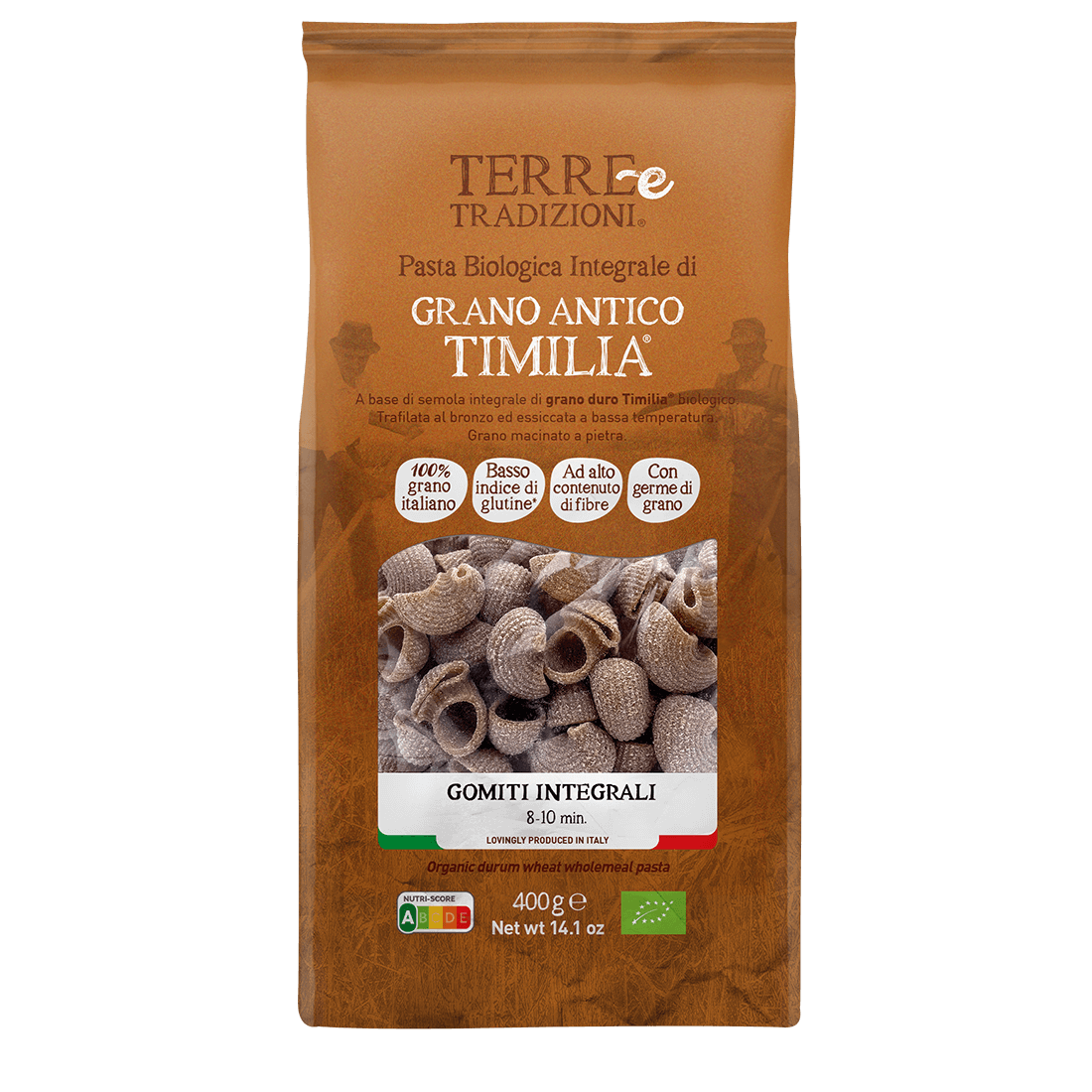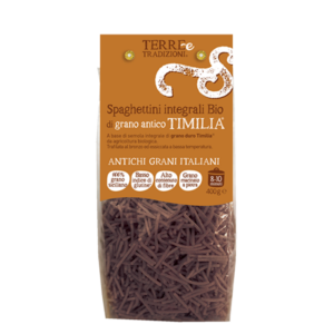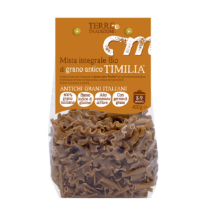 - A base di semola integrale di grano duro Timilia (o Tumminìa) da agricoltura biologica