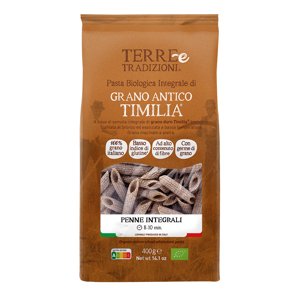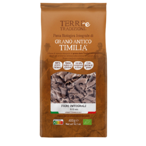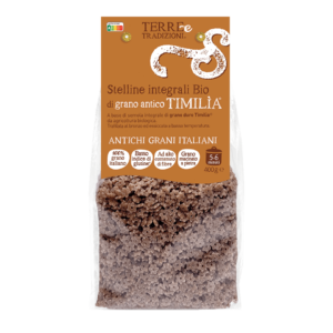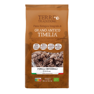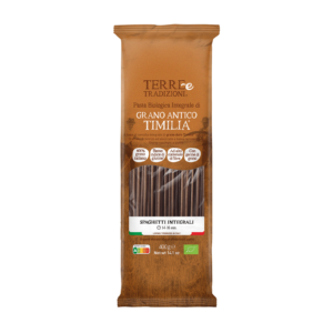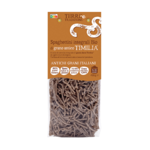 - A base di semola integrale di grano duro Timilìa (o Tumminìa) da agricoltura biologica