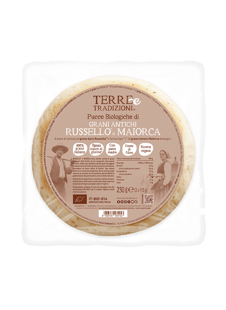 - Prodotto da forno a base di grano antico duro Russello e grano antico tenero Maiorca,
