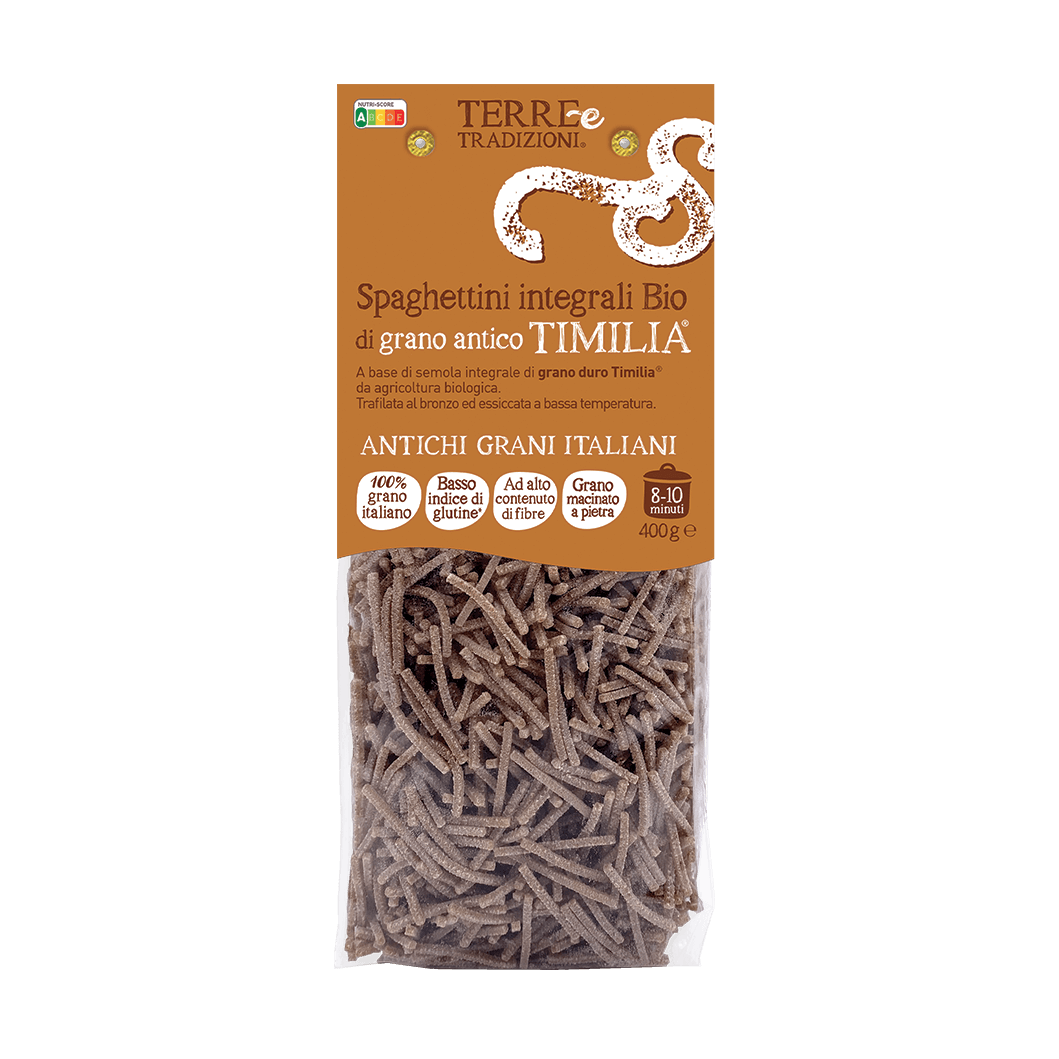 - A base di semola integrale di grano duro Timilia (o Tumminìa) da agricoltura biologica